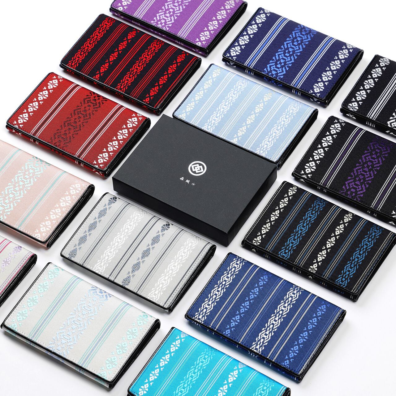 表地に日本が誇る伝統工芸品の博多織の代表的な文様「献上柄」を配した、名刺入れです。