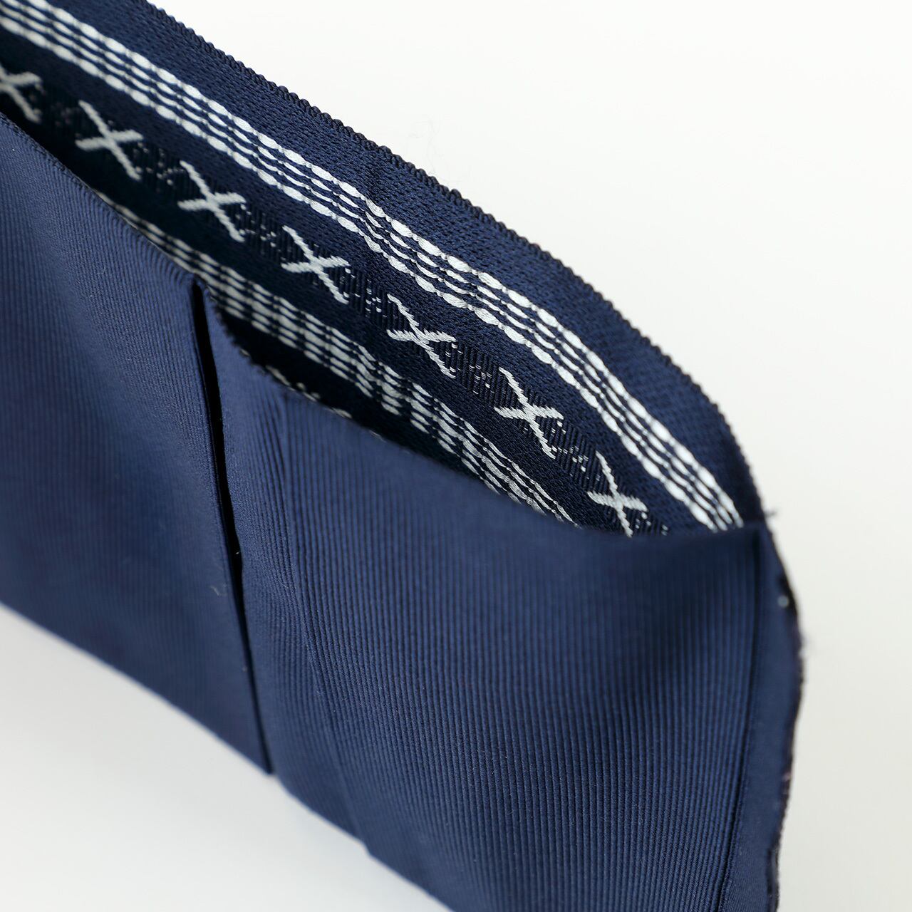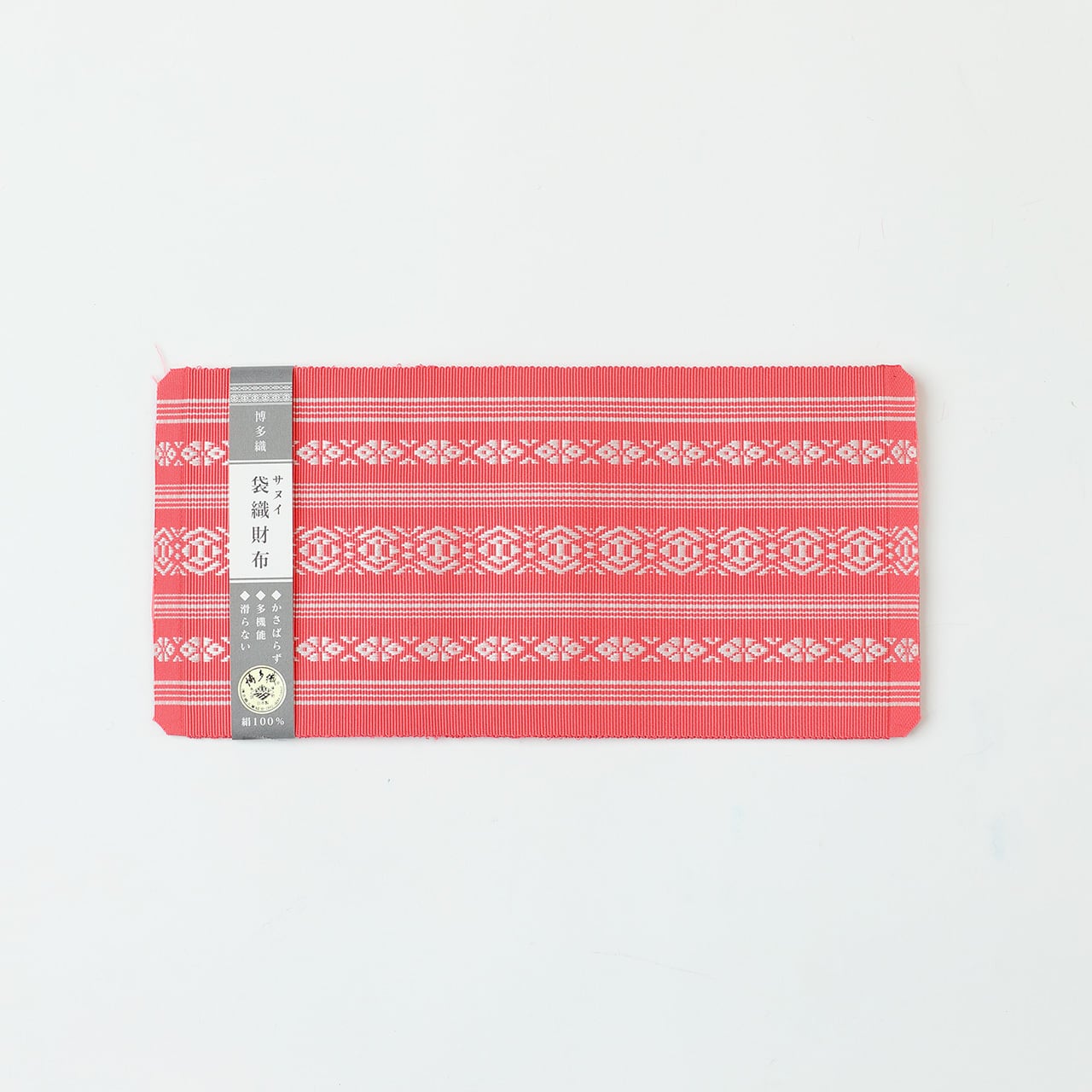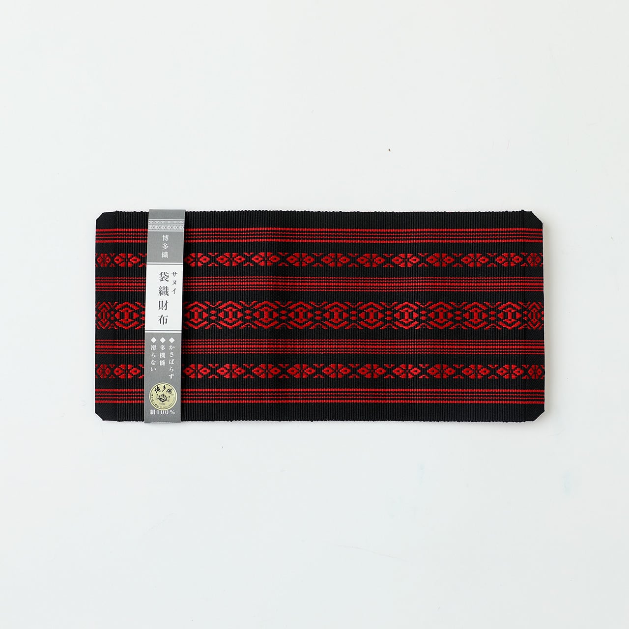 縫い目のない珍しい財布で、博多織の代表的な文様「献上柄」を配しされ、繊細で上品な印象です。