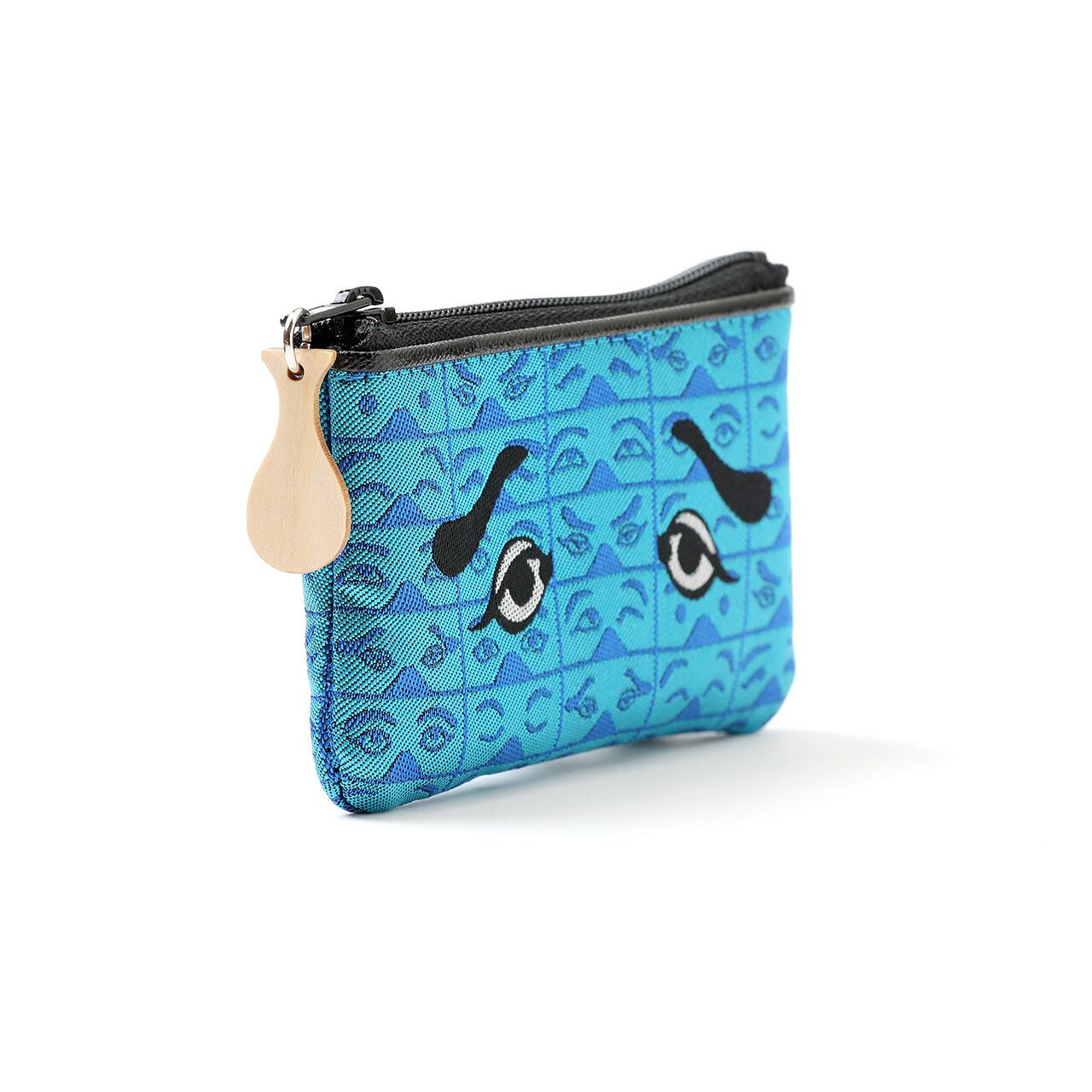 日本が誇る伝統工芸品の博多織で、にわか面の様々な表情を地模様にあしらった小銭入れです。