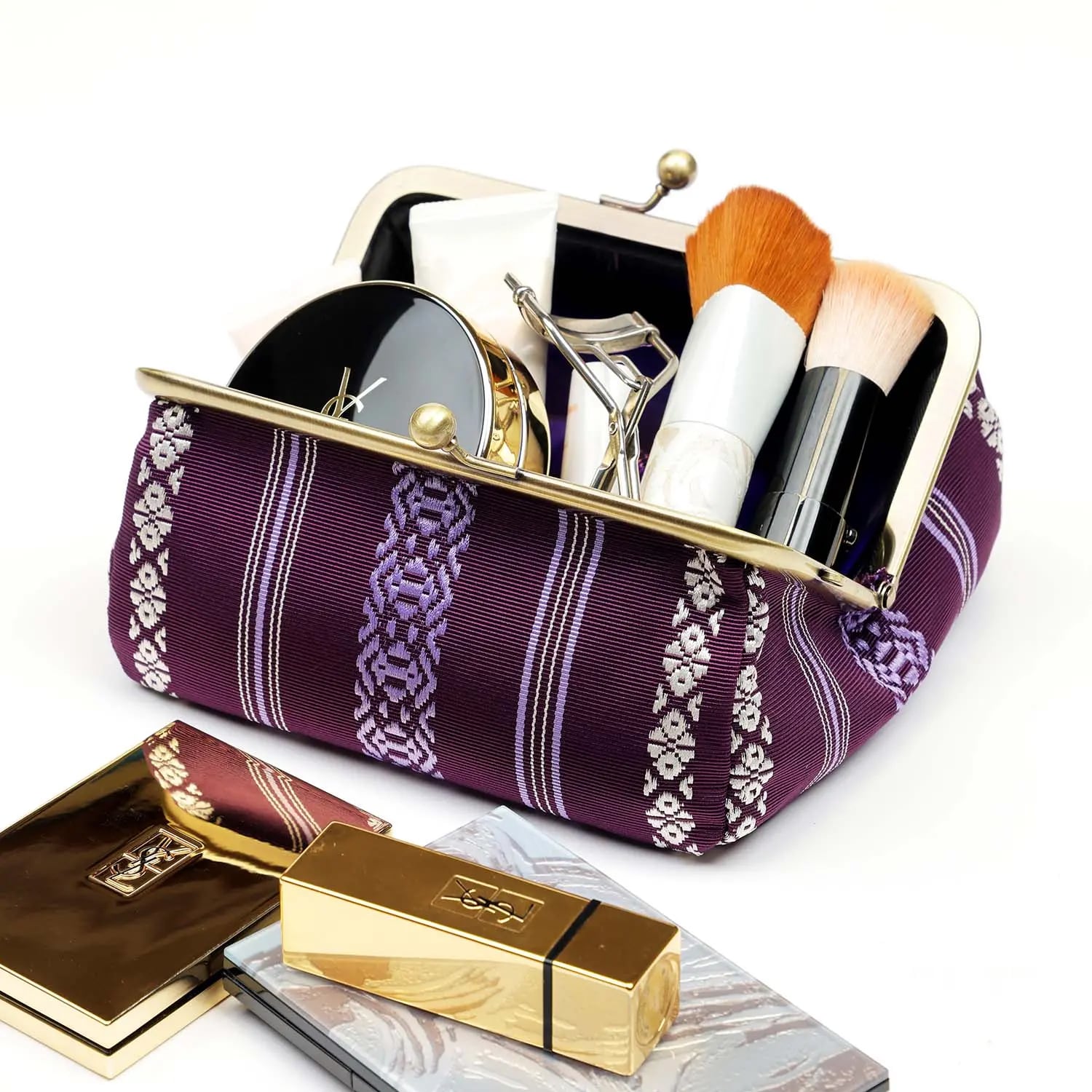 たっぷり入って探しやすい、博多織献上柄のコスメポーチ